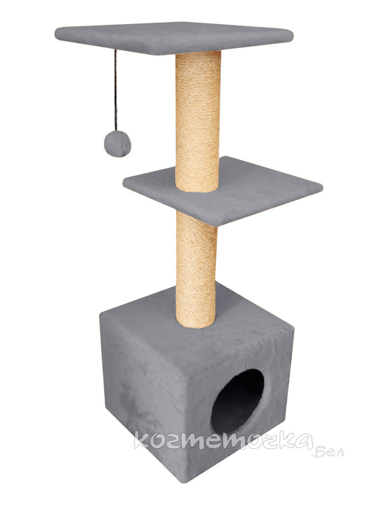 Домик Cat House с двумя полками с шариком на резинке (мех, сизаль), 100 см
