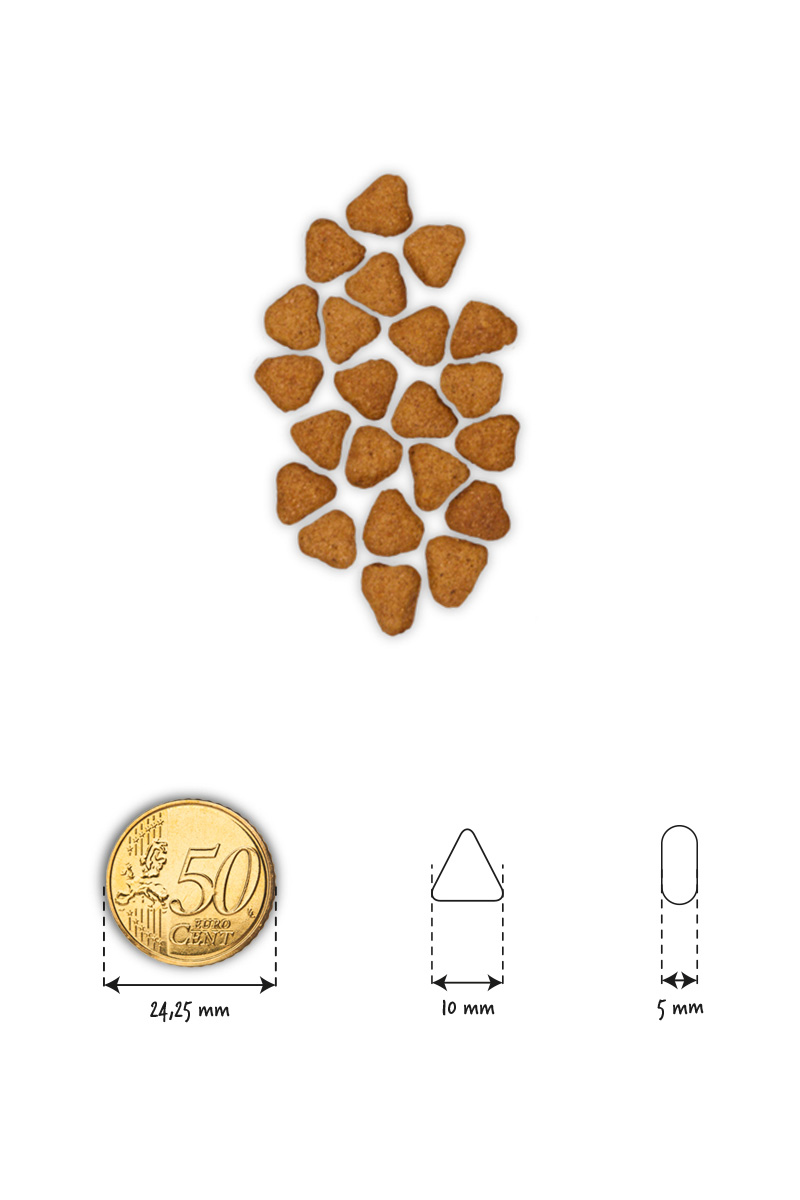 Свежеприготовленное куриное мясо 30%, дегидрированное мясо курицы 23,2%, горох, кукуруза, рис 4%, рисовые отруби, ферментированный белок, лигноцеллюлоза, гидролизованное мясо курицы, кукурузный глютен, куриный жир, ячмень, яблочный жом, дрожжи, минералы, рыбий жир, инулин (ФОС) 1000 мг/кг, гидролизованные клеточные стенки дрожжей (МОС) 1000 мг/кг, цитрусовый жом, юкка Шидигера.