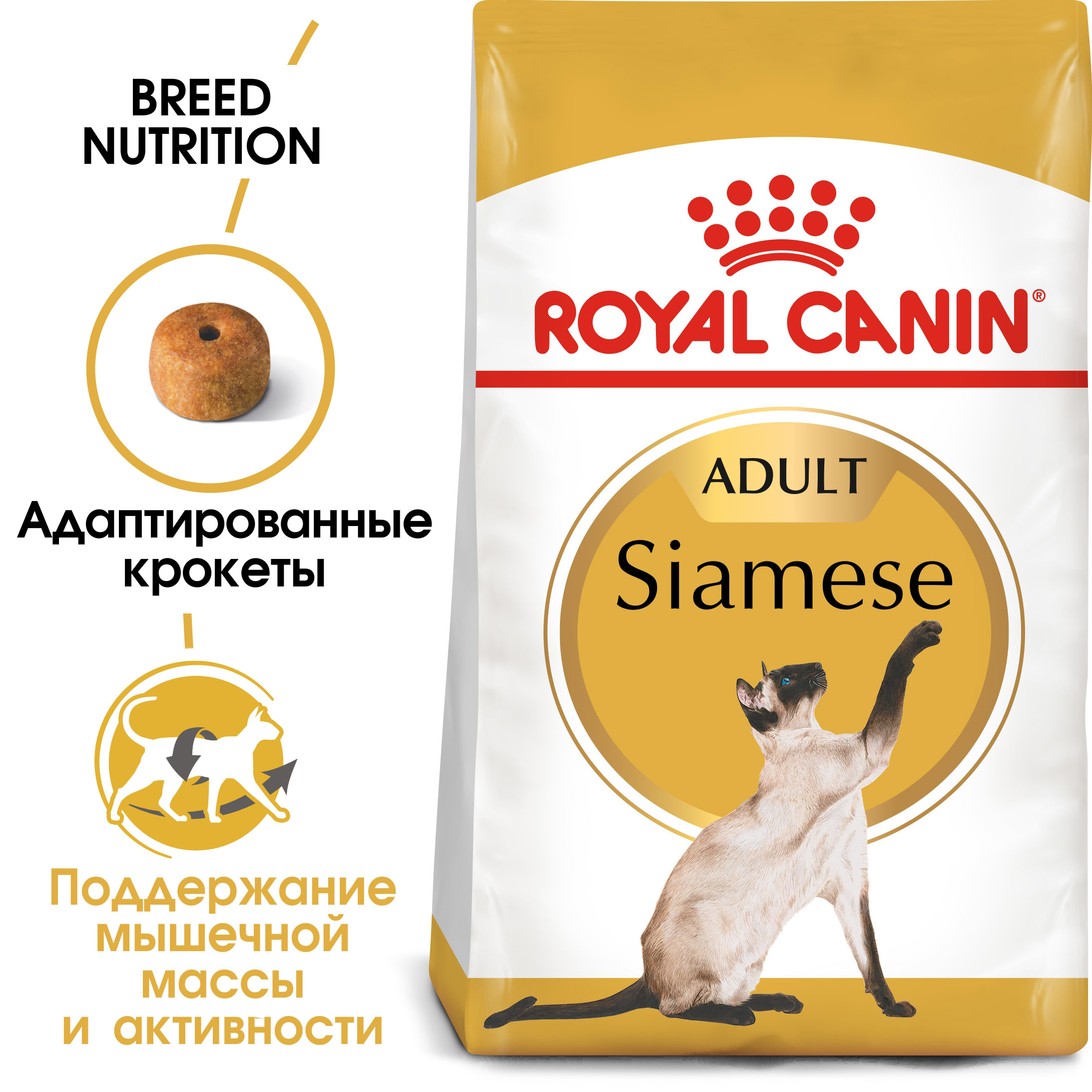 Повышенный уровень содержания высококачественных белков (38 %) и умеренное содержание жиров (16 %) помогают сиамским кошкам оставаться изящными и мускулистыми. Продукт обогащен L-карнитином.