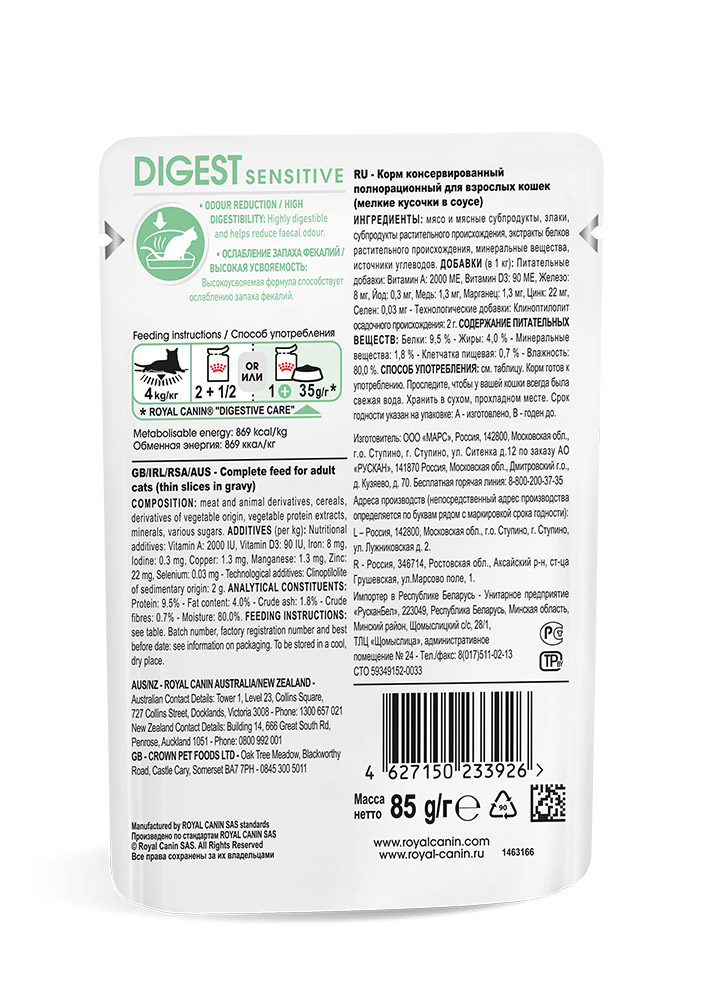 Корм для кошек с чувствительным пищеварением Роял Канин Дигест Сенсетив кусочки в соусе (Digest Sensitive in GRAVY)