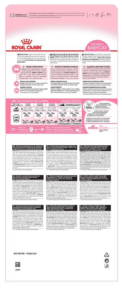 В возрасте с 4 до 12 месяцев у котенка постепенно снижается иммунитет, полученный с материнским молоком. MOTHER & BABYCAT помогает поддерживать естественные защитные механизмы котенка благодаря уникальному комплексу антиоксидантов, включающему витамин Е.