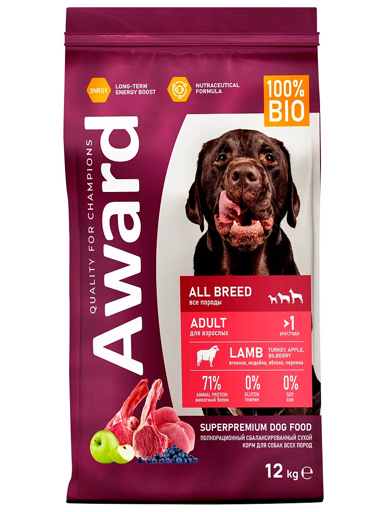 Award Adult Dog (Ягненок, индейка) — сухой корм для взрослых собак всех пород.