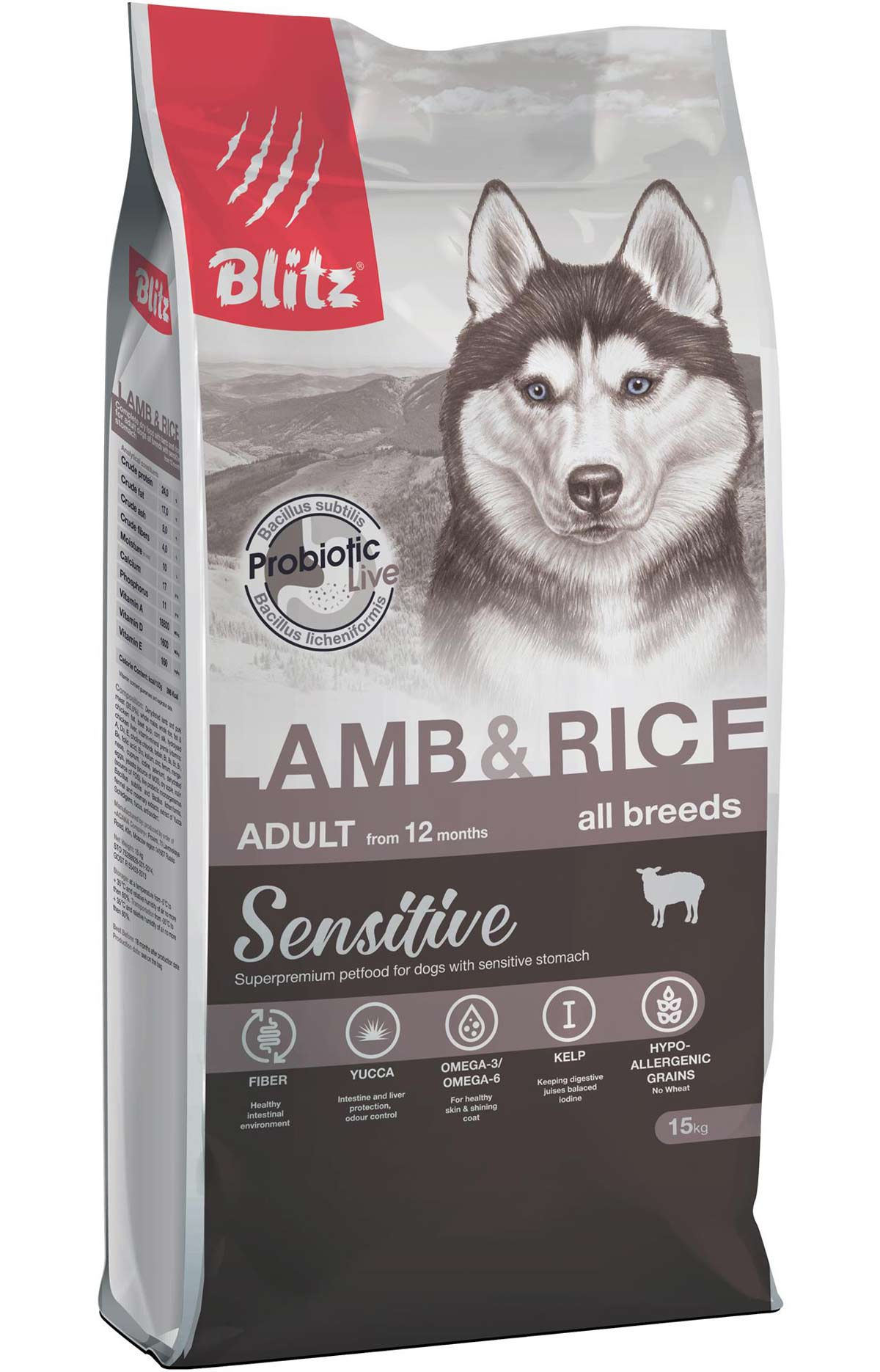 Сухой корм Блиц Сенсетив для взрослых собак всех пород с ягненком и рисом (BLITZ Adult Lamb & Rice All Breeds)