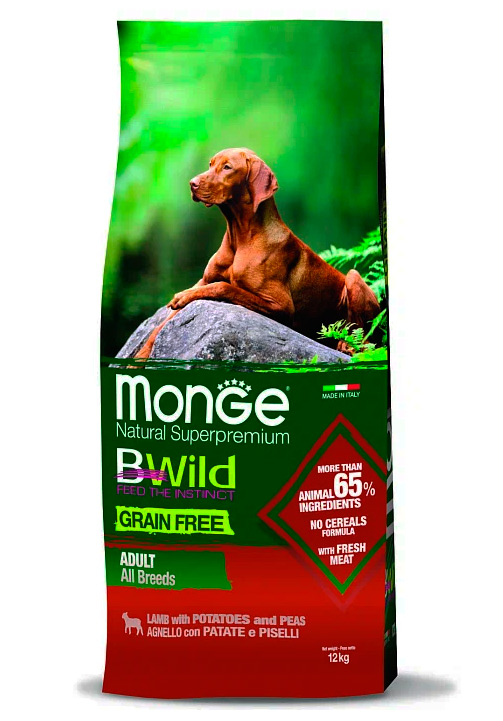 Monge Dog BWild Grain Free Adult All Breeds (Ягненок) — это полноценный сбалансированный беззерновой рацион для взрослых собак всех пород, склонных к аллергической реакции на глютен, а также для молодых животных, ведущих активный образ жизни.