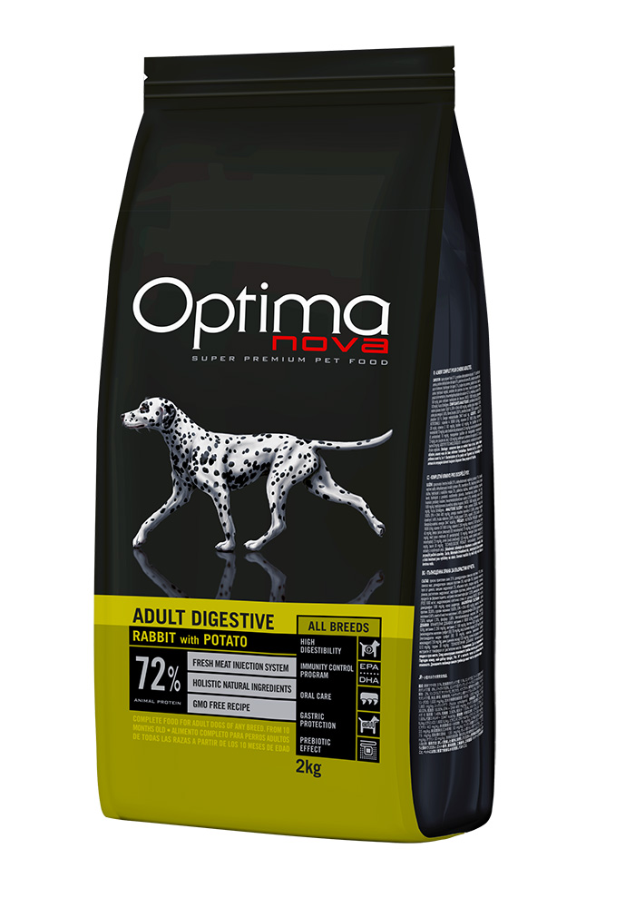 Сухой беззерновой корм для взрослых собак всех пород с чувствительным пищеварением Оптиманова Эдалт Дигестив Adult Digestive Rabbit & Potato (кролик, свинина, картофель)