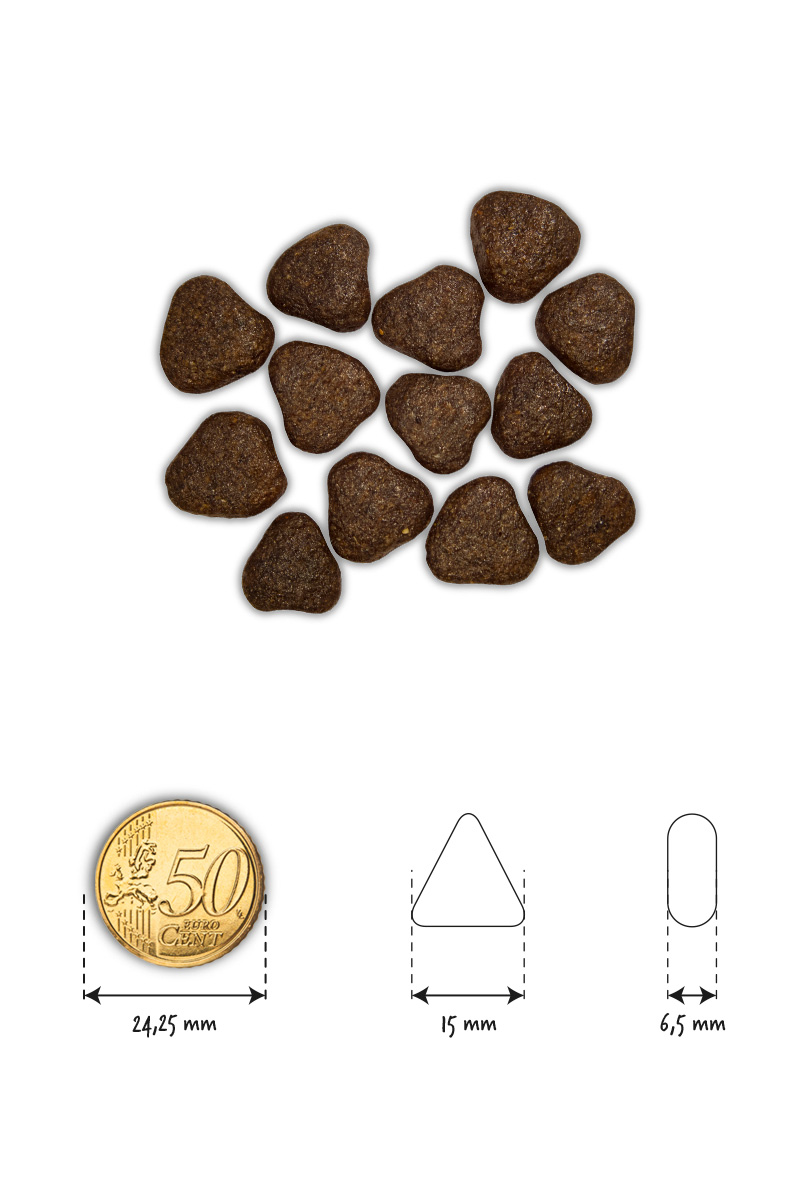 | Состав | Свежеприготовленное мясо кролика 31%, дегидрированная свинина 11%, горох, свиной жир, дегидрированное мясо кролика 8%, картофель 8%, гороховый крахмал, свекольная мякоть, гидролизат мяса кролика 2%, яблочная мякоть, сладкий картофель, тапиока, рожковое дерево, растительный гидролизат, картофельный белок, рыбий жир, дрожжи, продукты ферментации, гексаметафосфат натрия 0,3%, минералы, инулин (ФОС) 1000 мг/кг, гидролизованная клеточная стенка дрожжей (МОС) 1000 мг/кг, имбирь 1000 мг/кг, Юкка Шидигера. | ||||||||||||||