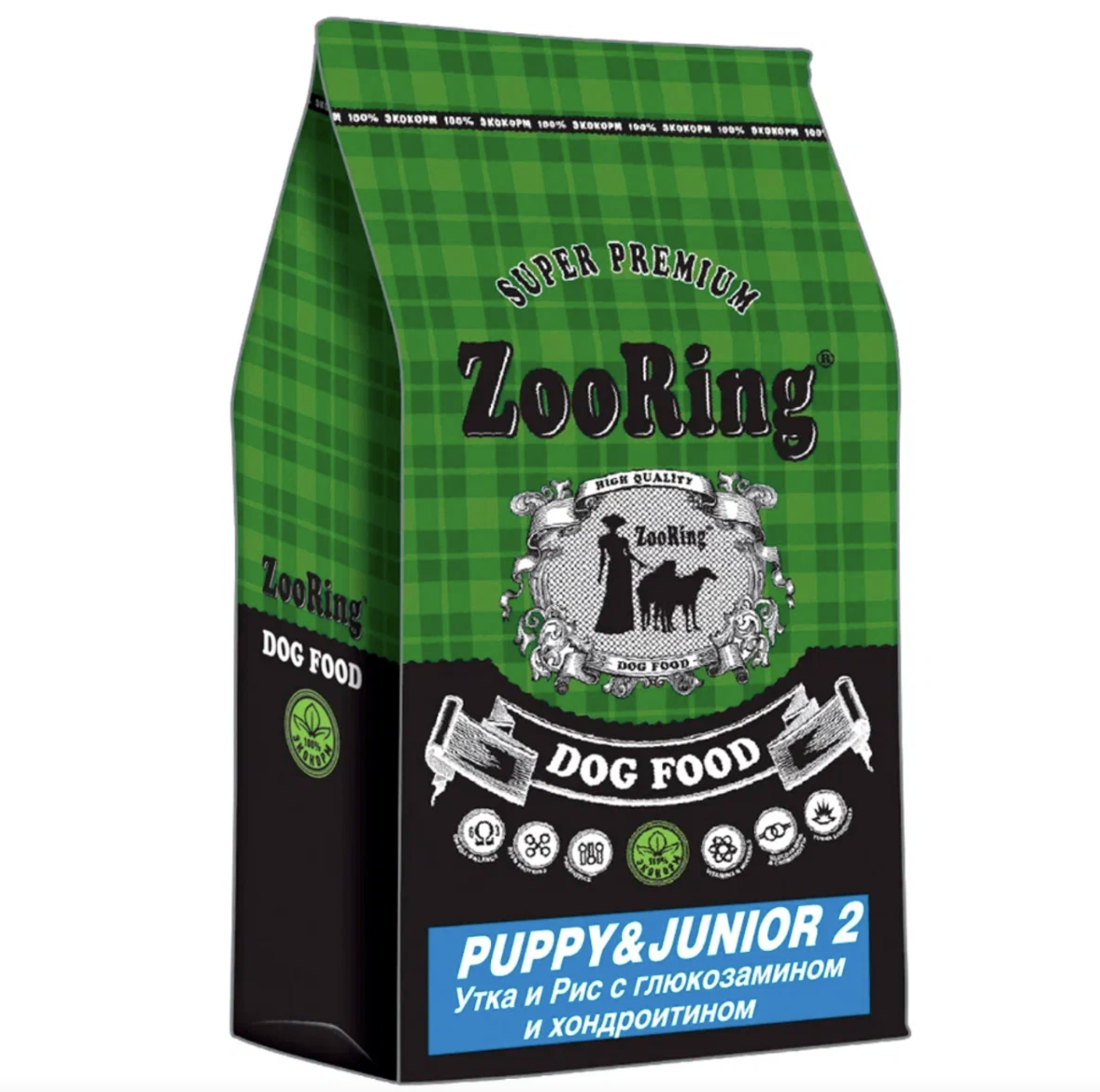 Корм ZooRing Puppy & Junior 2 для щенков и юниоров средних и крупных пород с 4 до 12-18 месяцев (Утка и рис) с глюкозамином и хондроитином